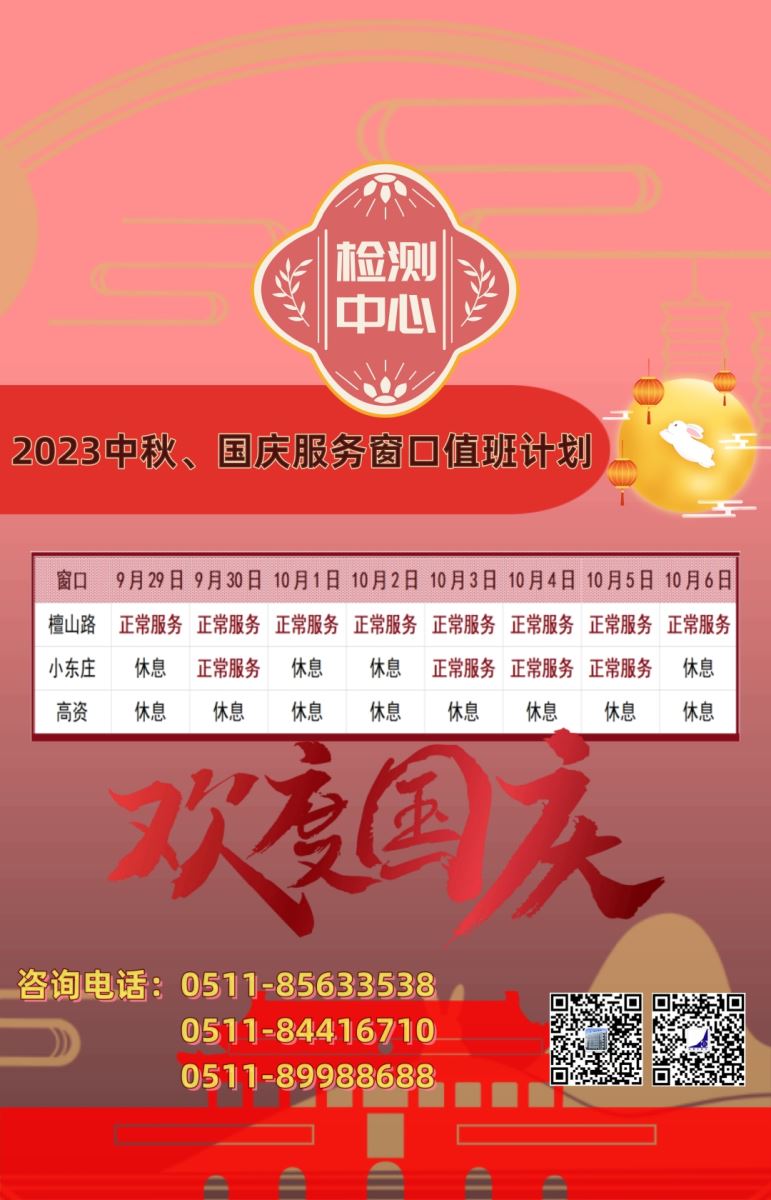检测中心2023年中秋、国庆节服务窗口值班计划
