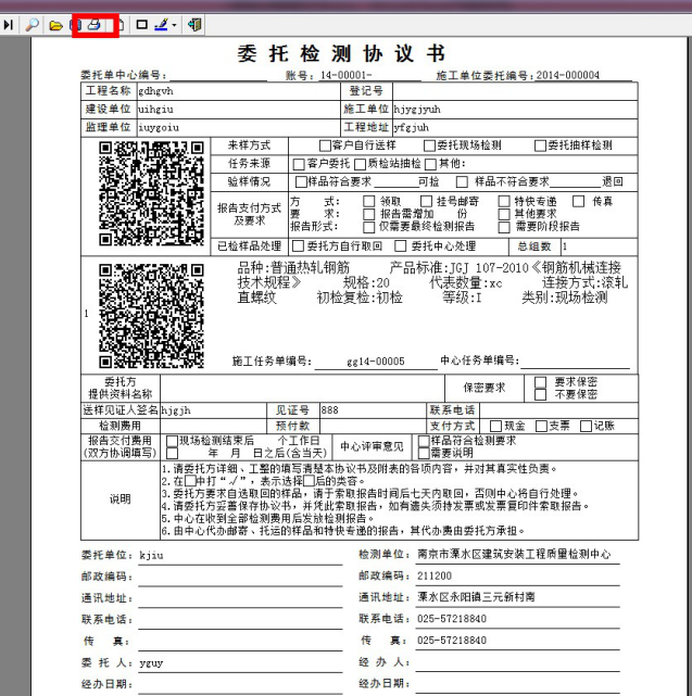 优点:每个施工单位只负责本单位的相关委托信息,减少信息填写错误的情况发生。 注意: 该软件中工程信息是需要检测中心录入的,工程信息必须先在检测中心的检测软件中录入,然后把检测软件里该工程的相关信息录入到该软件里的工程信息里,账号和工程代号必须和检测软件里一致。