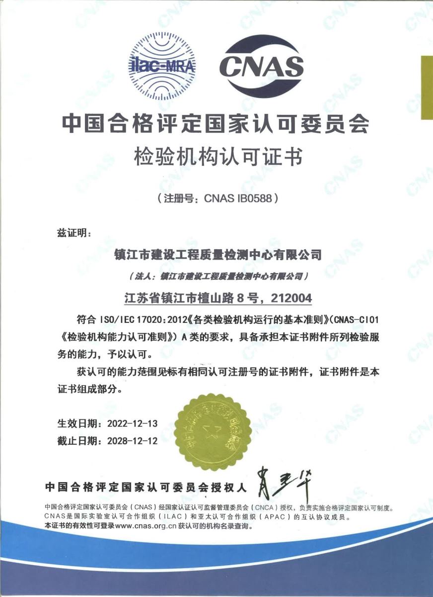 CNAS检验机构认可证书